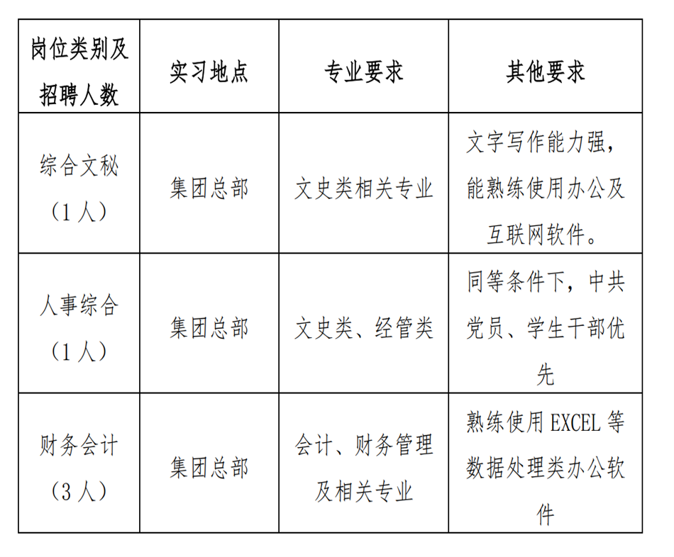 2.综合管理岗位要求文史、经管类专业,其他条件优秀者可放宽专业要求。