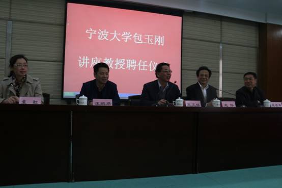 王文斌副校长在致辞中说:“赵教授在世界经济与国际贸易学领域具有非常高的声誉,他的加盟将会更好地促进我校国际经济与贸易专业和应用经济学一级学科的科研和教学水平,提升学科综合实力及知名度。”赵伟教授非常愉快地接受了聘任,并发表了热情洋溢的答谢词,感谢宁波大学的信任,认为这是宁波大学对所有做学问学者的一种褒奖,是很有校园文化的。