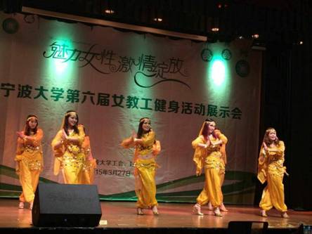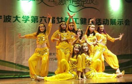 3月27日下午,由校工会﹑校妇委会主办的宁波大学第六届“魅力女性 激情绽放”女教工健身活动展示会在锦绣小剧场举行。十大菠菜网站 分工会组织邵丽﹑郑凌燕﹑王凡﹑张珊珊﹑宋佳敏﹑王莹﹑萧小芬﹑闻梦晓等八位美女教师,以她们激情四射﹑精彩纷呈的《印度新娘》表演,征服了评委和全场观众。根据评委现场评审和综合讨论评议,最终获得最佳着装奖。