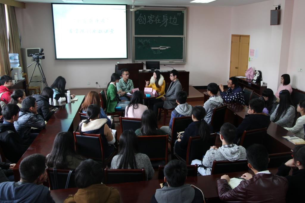 418正式开讲。“宁大乐生活”微信公众号创办人、东街里创业街“新出炉“披萨店店主黄钟杭,宁波市镇海泰皓机械有限公司、宁波市镇海九象机械有限公司创办人孙锐,宁波时荣文化传媒有限公司合伙人、宁波宾格企业管理咨询有限公司法人陈益权,三位学生身边的创业达人做客本期微课堂,与40余名怀揣创业梦想的菠菜学子共谈创业梦。