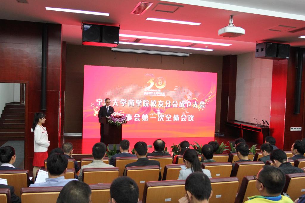 成立大会在校党委委员、纪委书记余建森作的精彩的致词中拉开序幕,他首先代表学校对广大校友回母校参加院庆校庆表示热烈的欢迎。接着,他介绍了学校发展的历程和发展近况。他强调,校友是学校的宝贵资源、是学校的重要名片、是学校建设发展的重要支持力量。他希望校友会的成立可以充分发挥桥梁纽带作用,加强相互交流交往,不断提升沟通合作水平,将校友会打造成情感交流的驿站,经验交流的平台。同时,高校也要积极开动脑筋,不断优化对校友的服务水平。鄞州宁波大学校友联谊会代表褚孟品、宁波大学MBA联合会代表杜柏松,中澳MBA校友会代表孙一淳先后发言,共同表达了校友会将团结互助、开拓进取、竭尽所能,重视加强校友会之间、校友与母校之间、校友之间的交流与学习,努力将校友会打造成为信息、资源、利益共享的平台。