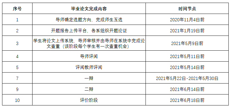 十大菠菜网站 2021届本科毕业论文主要工作时间节点
