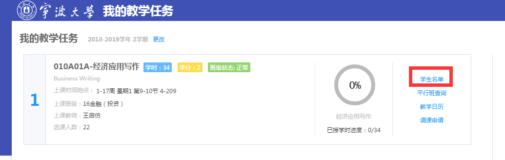 3、在我的教学任务中点击“学生名单”,可打印“登分册”、“点名表”和“课堂情况记录表”。