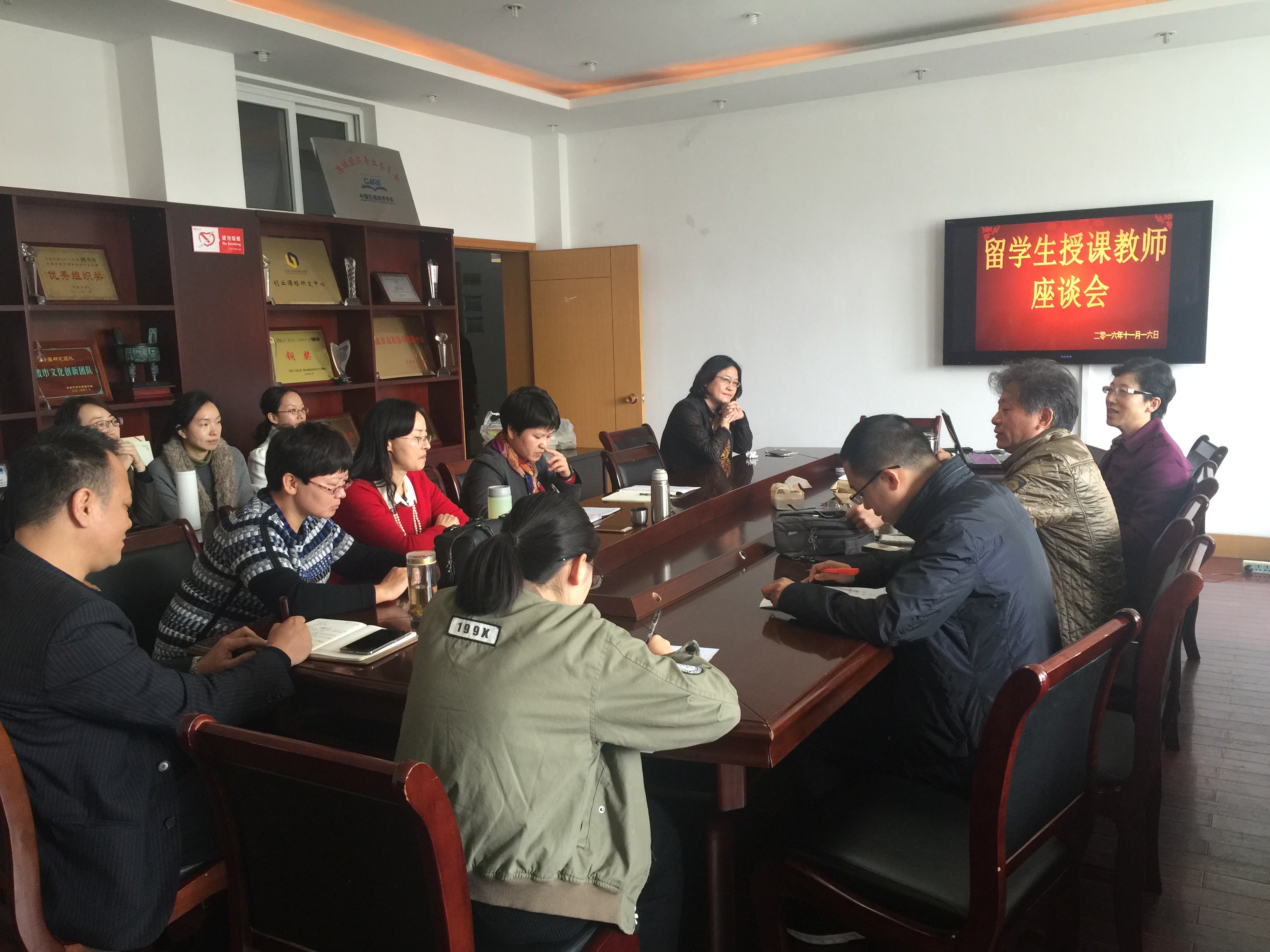 为留学生授课的教师座谈交流会。院长助理、分管教学的陈涛老师和院教学办主任江蓉老师出席了会议。会议由院督导主任徐群芳老师主持。