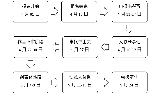 3、报名参赛者将有机会参加大咖分享汇、创客体验馆、创意大碰撞、电梯演讲等多个环节,同时有机会获得电梯演讲评审专家天使投资;
