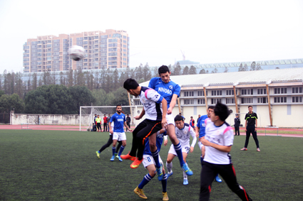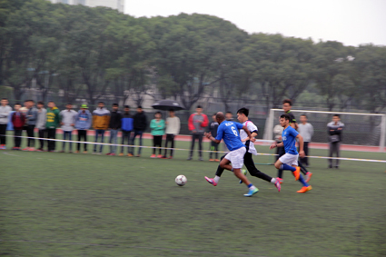 的中国学生与留学生们从四面八方赶来,带着满腔热情,支持自己的球队。率先开球的13运训队,紧锣密鼓的进攻和驾轻就熟的配合让人猝不及防。他们抓住一次空档,趁着中国队后卫来不及防御,突出重围将球带入球门前,前锋使劲一击,只见球以迅雷不及掩耳盗铃之势飞入球门。面对强悍而富有经验的对手,以及一分之差的落后比分,宁大校队不慌不忙,继续沉着应战。在一次次的进攻失败后,SPIDIO队终于凭借默契的团队合作,将勇猛的对手成功离散,以一记惊险的射球将比分扳成1比1。就在比分刚刚扳平不久,一声犀利的哨响将比赛带入尾声。