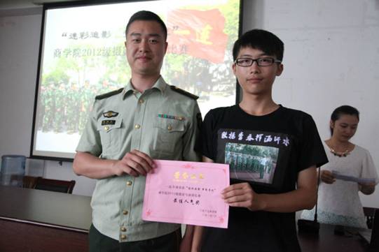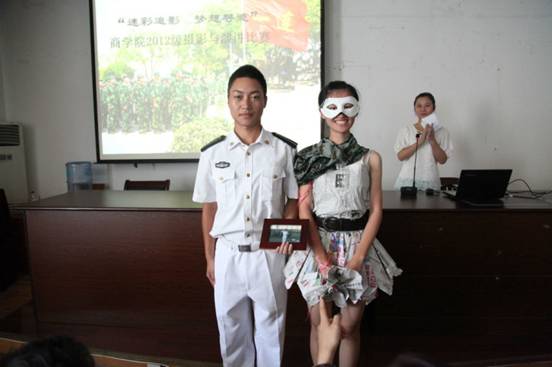 比赛分为军训摄影PPT展示和主题演讲两大块,依次由一连十个排上台演讲展示。演讲展示的内容包括了“军训时装”、“我们的军训故事”、“我们亲爱的教官”、“军训防暑高招”等内容。各排的创意与激情在比赛中体现地淋漓尽致。让人记忆深刻的是军训时装展,各排分别利用环保、绿色的材料,如报纸、蚊帐等,制作成缤纷的迷彩,成了现场的最大的亮点。评委、嘉宾和同学们掌声不断,热闹非凡。比赛最后,评选出一二三等奖和最佳人气奖,各排还为自己的教官送上了此次摄影展的相框,纪念这一段难忘的经历。