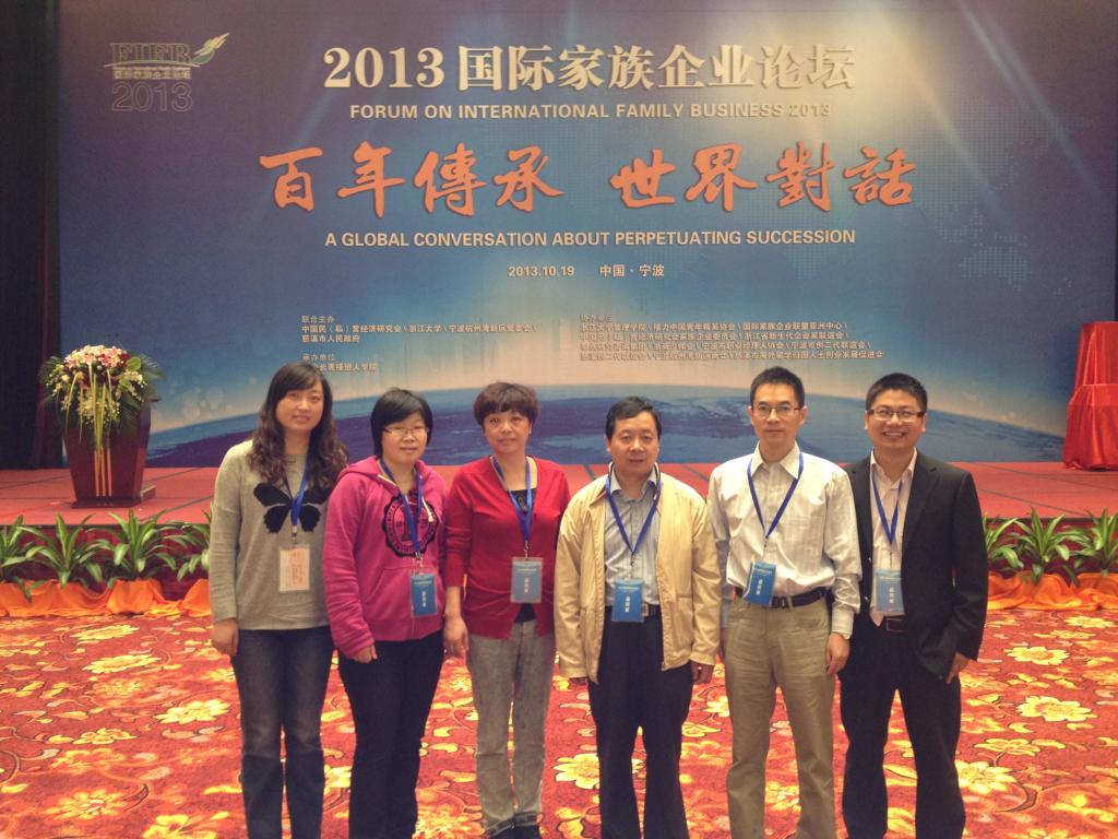 2013年10月19日,工商管理教师受邀参加在宁波杭州湾举办的“2013国际家族企业论坛”。该论坛由中国民(私)营经济研究会、浙江大学、宁波杭州湾新区管委会、慈溪市人民政府联合主办,家业长青菠菜网站 承办的第七届国际家族企业论坛。