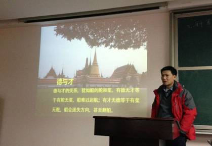 本次交流会邀请到了南京输油处大榭岛油库生产部副总经理、震雄机械(宁波)有限公司的人力资源部经理。杨勇先生有十多年的央企工作经验,他从“德和才”的关系入手,引出了职业生涯中需要具备的基本素质:良好的道德素质、卓越的能力素质、强烈的责任感。又通过一系列的实例,给我们职业生涯规划提出了方向和建议。林武先生以“职场——梦想的加油站”为主题,从加深对企业与组织体系的认识、今后是一个专家的社会、树立贡献意识、塑造良好的职业形象、提升四种思维能力和坚持有效学习等六个方面于大家分享了他在职场的经历和经验。