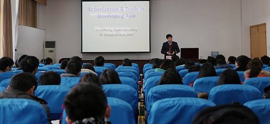 近100名师生做了一场题为“Urbanization and trade in developing asia”的学术报告。十大菠菜网站