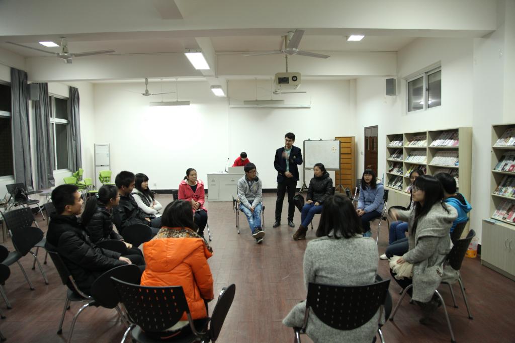 “减压训练”第一场以促进认识,建立信任为主题,旨在促进各心理委员间的了解,形成团队,激发其参与活动的积极性。在团辅正式开始之前,陈彬老师简单介绍了此次团辅的性质、意义、内容与规则。之后团辅在破冰游戏——“大风吹”中拉开帷幕。该游戏让大家快速消除了陌生感,提高了参与活动的积极性。随后开展的串名字游戏、“动物星球”不仅使心理委员们相互熟悉,而且帮助其探索自我概念,增强了对自我压力状态的了解。活动临近尾声时,每位心理委员分享了对本次团辅的感想与收获。最后,陈彬老师对本次团辅进行了总结,强调了团队支持与自我了解对减压的重要作用,并约定了下一场团辅的时间与地点。