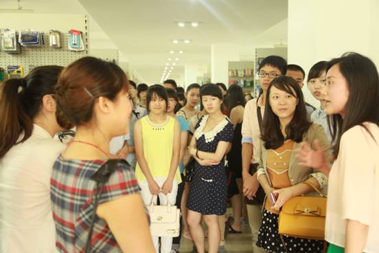 公司办公室主任周开莹女士和人事经理陈艳女士热情接待了考察一行。师生们首先参观了公司的样品陈列室,三千多平米的陈列室展示了上万种商品,大家不禁惊叹道仿佛进了大型超市。公司工作人员向同学们详细介绍了公司的菠菜网站、主营项目、公司绩效等。随后,大家到亚虎公司的业务部进行了参观,工作人员就公司的业务内容、业务流程、人员发展等情况向大家做了全面介绍。整个参观过程同学们兴致高昂,与工作人员的交流互动频繁,也对外贸业务工作有了进一步的理解。