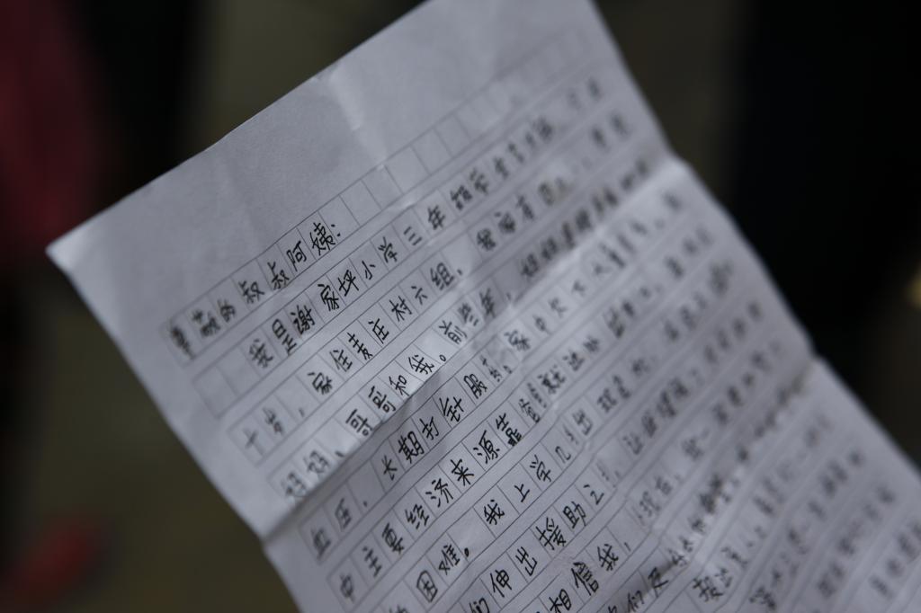 之后的时间里,向校长安排了我们与6个贫困学生的交流。在这些小学生中,有的父母双亡或双残,有的主要劳动力患重病,有的家庭遭遇意外不幸。虽然在求学的道路上异常艰辛,然而他们发奋学习,自立自强,在校都是品学优良的学生。小小年纪就过早的开始适应自理生活,,当城里的孩子依偎在父母身边享受无忧无虑童年时光时,他们却在为无钱支付家庭开支而失学。没有经过电脑操作的多媒体教学,老师们写在黑板上的每个字都认认真真地抄录在粗糙的笔记本里。尽管学习的条件十分艰苦,但这是他们走向未来的希望。
