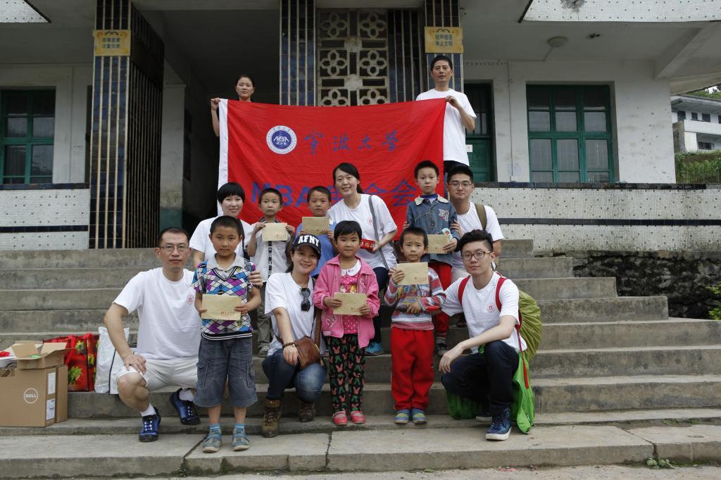 宁波大学MBA学员代表们对谢家坪小学杜海洋等6名贫困大学生进行无偿资助,贫困学子每人每年1000元;并赠送了部分文具用品及二台教学电脑。