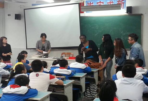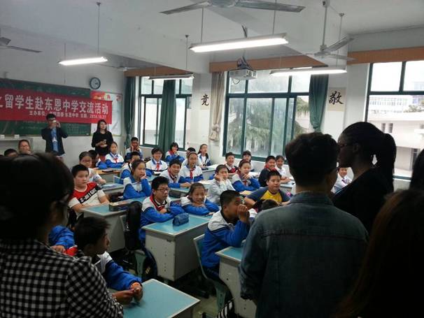 团委同学及来自美国、摩洛哥的留学生同学代表走进东恩中学,与在校学生进行互动交流。