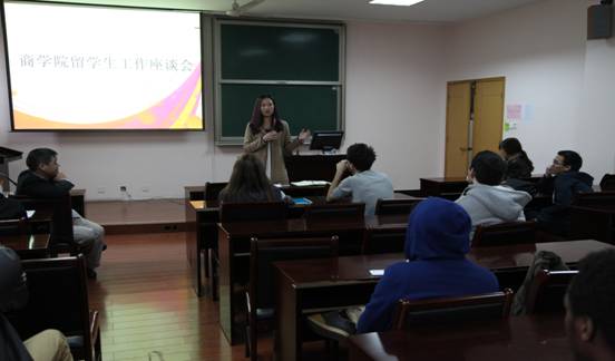 党委副书记邵丽老师、14级国际经济与贸易留学生班主任楼朝明老师、学工办王莹老师及14级全体留学生出席了此次座谈会。