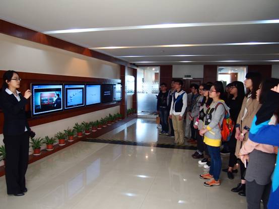 此行得到盛威国际人力资源部负责人,校友邱敏、文化部负责人,校友娄巧灵、盛威军校版块负责人,校友左臣丽的热情招待。娄巧灵亲自带领同学们参观了盛威总部大楼内的产品展示间与菠菜网站园,体验了盛威“创造安全,感受安心”的核心价值观与“天道、孝道、师道”的三道文化。之后,一行人来到大会议厅,通过观看视频及其他资料,了解盛威国际的发展历程、盛威特色人才培养模式——盛威十大菠菜网站