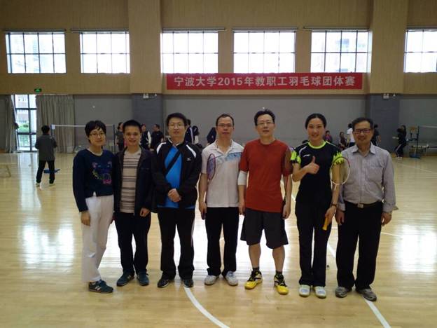 分工会组织邵丽﹑陈永平﹑朱淮泽﹑陆智强﹑闭明雄﹑屠晶露等六名教师组成的教工代表队,参加2015年宁波大学教职工羽毛球团体赛。