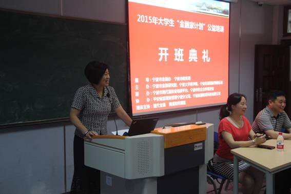 、宁波金融理财师俱乐部、宁波市现代服务业培训平台、宁波市校企合作促进会联合主办的2015年大学生“金融家计划”公益培训项目近日在宁波大学顺利开班。这一公益项目旨在提升大学生实践能力,发掘与培养宁波地区未来金融人才和年轻储备人才。本次公益培训还得到了平安财富理财管理有限公司宁波分公司、宁波益聚教育科技有限公司、现代金报、网易财经频道等机构的大力支持。