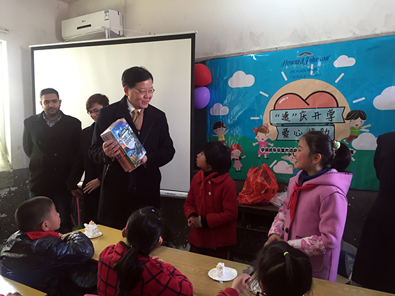 志愿者代表和酒店方一同抵达江北采文学校。酒店总经理彼得潘在现场发表了热情洋溢的讲话。随后,菠菜网站-十大菠菜网站