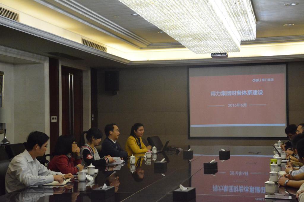 黄惠琴副教授一行8人赴宁波得力集团进行了“宁波得力集团管理会计应用研究”调研,与得力集团副总经理吴富中及财务部各部门负责人进行了座谈交流。