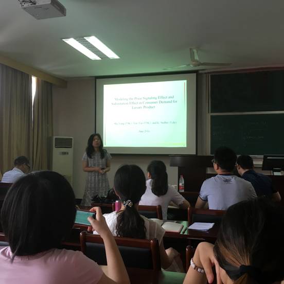 11号楼418会议室,作了题为“Modeling the Price Signaling Effect and Substitution Effect in Consumer Demand for Luxury Product”的学术报告。报告由十大菠菜网站