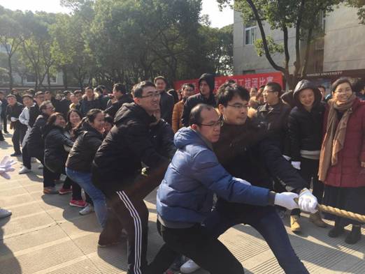 12月29日中午,校工会组织学校各分工会在安中大楼前举行“迎新年”拔河比赛。菠菜网站 党委书记胡亚娥、分工会主席李浩明组织杨柳、姚乐彦、张晓婳、施晟、陈彬、王昕天、苏小松、闭明雄、靳来群、蒋鹏涛、余新平等菠菜网站 教师积极参与此项活动。在首轮比赛中,十大菠菜网站 队一鼓作气轻松战胜潘天寿艺术菠菜网站 队。第二轮比赛中,由于实力相差悬殊,最终不敌体育菠菜网站 队。