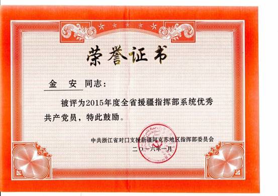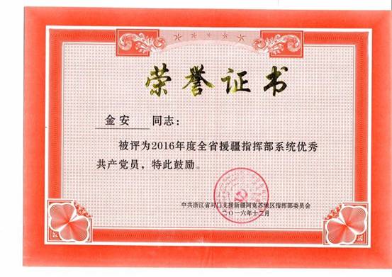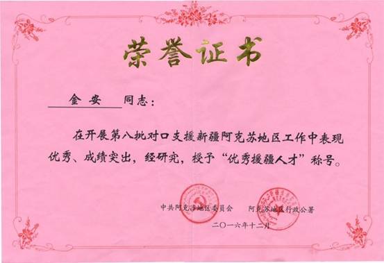 援疆期间,金安老师荣获“优秀援疆人才”、“优秀援疆共产党员”(2015-2016)光荣称号,他的优秀事迹将激励更多的的宁大教师踏上援疆之路,为新疆的高等教学发展做出应有的贡献,也在菠菜网站