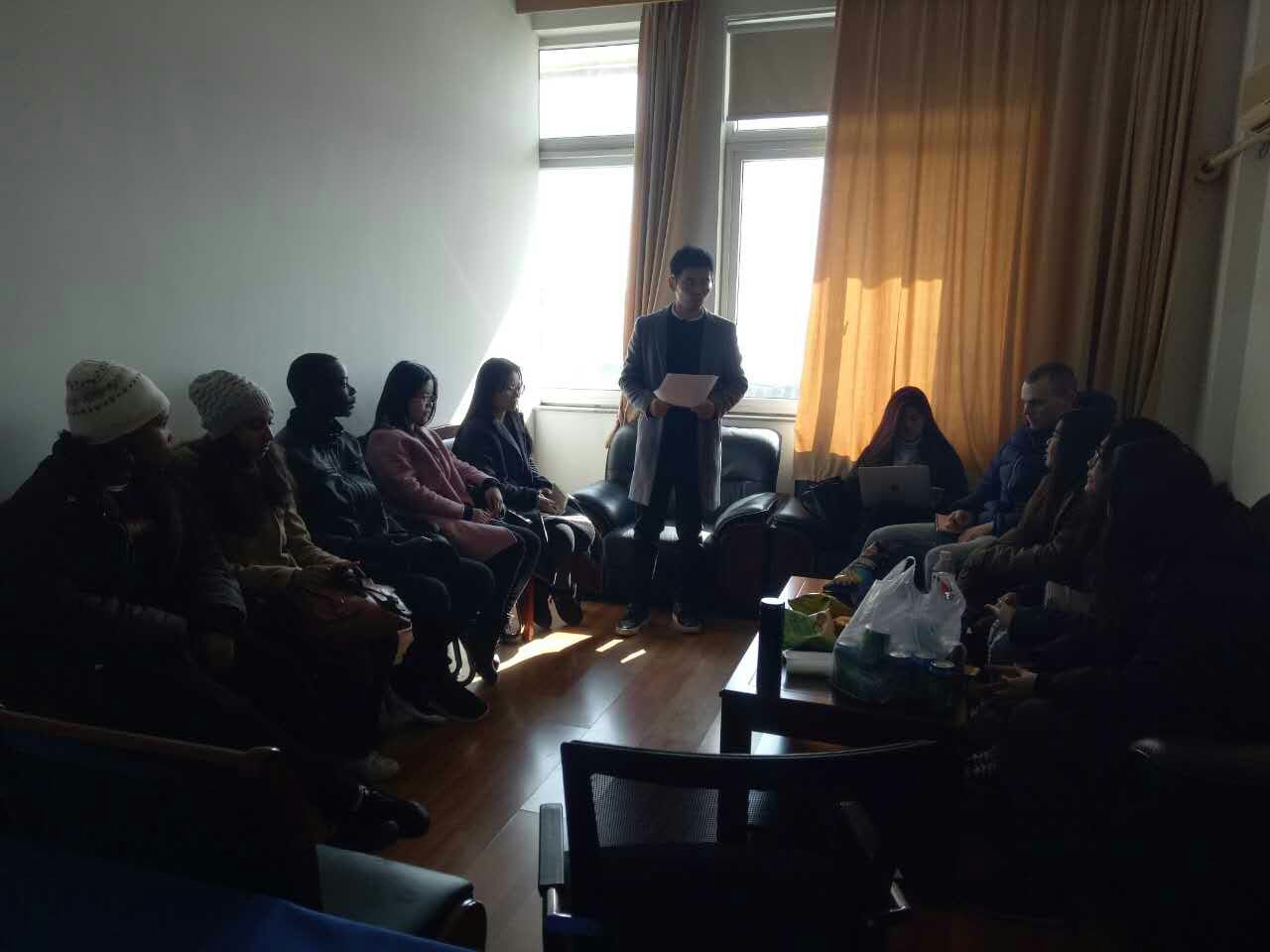 春节将近,为防范十大菠菜网站 留学生寒假期间各类安全事故,1月20日下午,十大菠菜网站 学工办留学生组为寒假留宿留学生们举行了安全会议。各班留学生干部和代表参加了会议,会议由学工办毛跃祖主持。