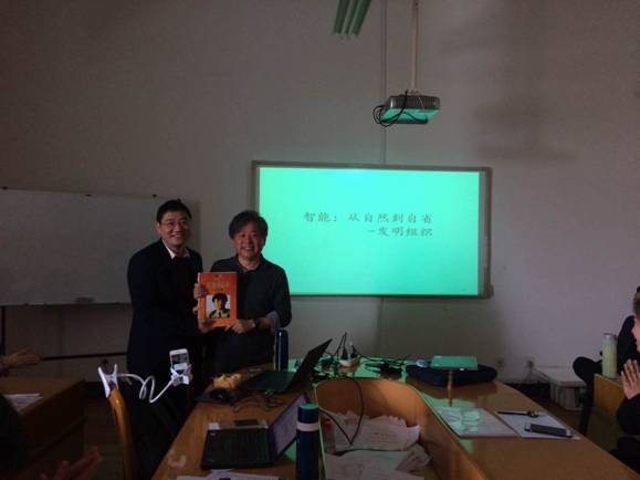 报告完毕后,与会人员进行了热烈的讨论与交流。彭新敏教授做了点评总结,认为从agent角度讨论企业的性质和本质,该话题具有挑战性;以agent的耦合解释中国情境与公司治理的意义和价值,该话题又极具想象力,未来值得进一步探讨。最后,彭新敏教授向王其冬研究员赠送了《政治的人生》一书来表达谢意和祝愿。