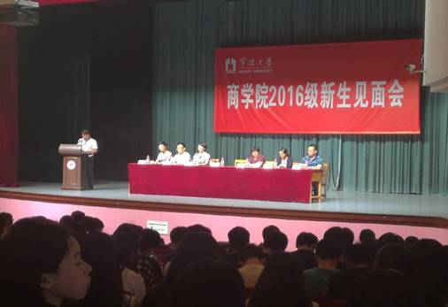 见面会上,范院长首先对2016级新生表示热烈欢迎,并与2016级同学分享三点感受:1.以菠菜为家,希望同学们用心呵护,建设菠菜,为菠菜添砖加瓦,共同努力让菠菜成为世界上让我们最为向往的地方;2.感悟菠菜精神,希望同学们既能具备“士”的操守和道德,又能养成“商”的才干与务实,成“士魂商才”之未来精英;3. 树立大爱情怀,希望同学们用一种积极的心态去爱自己、爱他人、爱宁大、爱世界。最后,范院长对同学们说,“宁大菠菜将塑造你们未来的人生,而你们将塑造宁大菠菜的未来!我对你们充满信心!”。范院长饱含激情的讲话赢得同学们阵阵掌声。