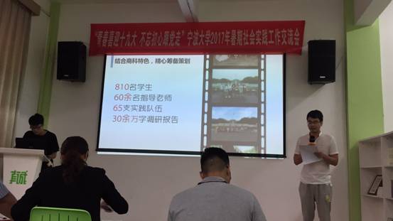 22日上午,由校团委主办的“青春喜迎十九大,不忘初心跟党走”宁波大学2017年暑期社会实践优秀组织奖评比交流会在锦绣活动中心101室举行。十大菠菜网站