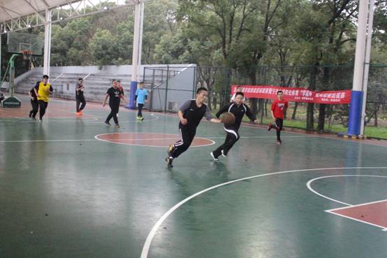 比赛于傍晚5点正式开始,在裁判的一声哨响之下,双方立马投入到了紧张而又激烈的比拼之中。比赛一开始,学生会代表队先发制人,凭借着精准的投篮和迅猛的快攻将比分拉开,而教工队则以快速的传切与稳定的中投、内线能力渐渐的将比分追进,就在比分快迫近时,学生会队又凭借着一波快攻不停的制造杀伤,引起了一波得分小高潮。