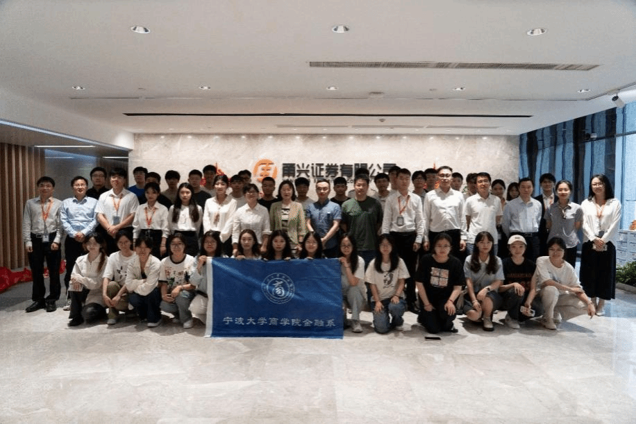 与甬兴证券于5月23日下午携手举办了主题为“证券行业初探——走进甬兴证券”的专业劳动实践活动。金融系邱波教授、胡育蓉副教授带领2022级金融本科生一起体验这场金融职业之旅。