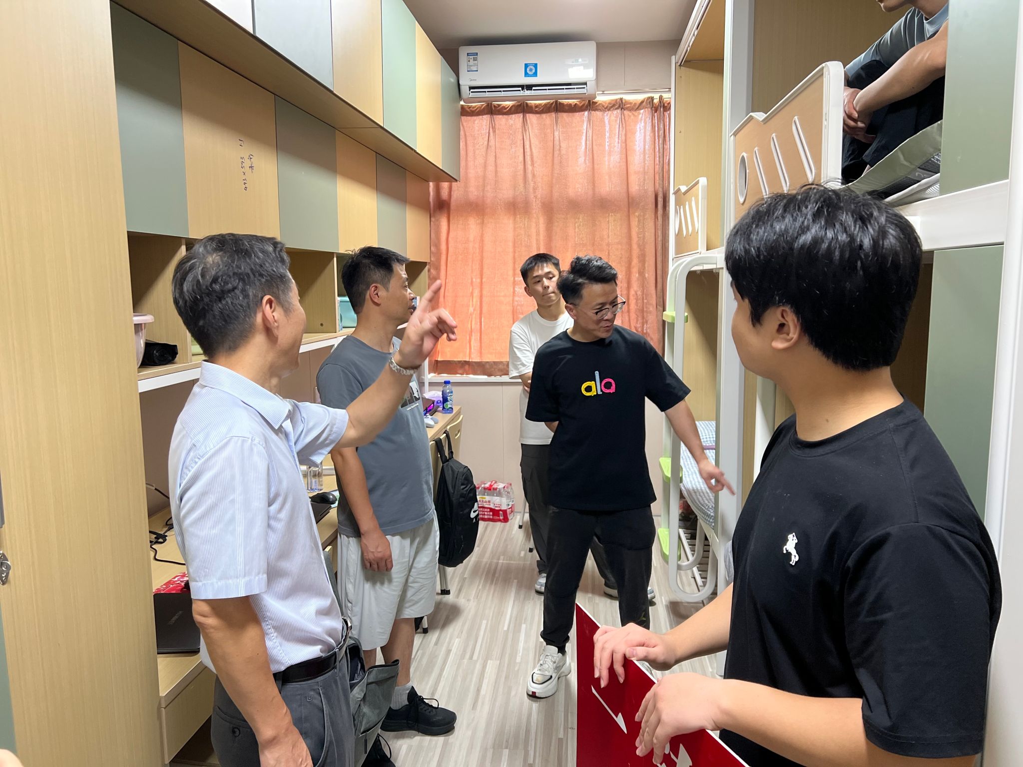 党委书记史宏协、副书记吴敏,带班辅导员王晶晶等一行深入新生宿舍,开展走访慰问活动。