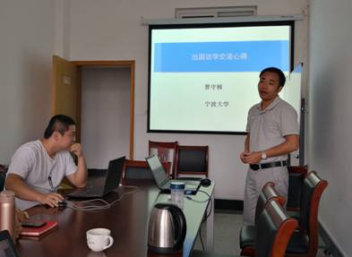 接着曾守桢老师就出国访学情况与各位老师交流心得。曾老师首先比较了国家留学基金委资助(CSC)、浙江省高校优秀中青年骨干教师出国研修项目、学校资助这三条资助渠道的差异及各自优缺点,并指出如果要出国,可以早早开始着手准备英语。接着简单介绍了出国手续办理流程,以及访学科研与生活情况。详细介绍了国外的租房与办公室申请情况。同时还建议各位想要出国的老师,科学研究在出国前尽量选跟自己研究方向相近的外国导师,这样可以在科研和英语学习上都有所提高。最后曾老师介绍了自己丰富的访学成果,申请到了国家项目,发表2篇SSCI和1篇一级核心期刊论文。