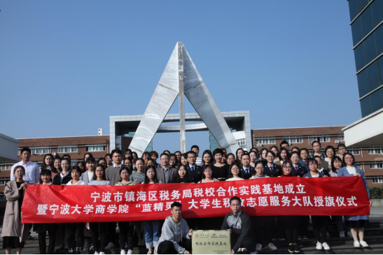 与国家税务总局宁波市镇海区税务局共同举行税校合作实践基地成立暨“蓝精灵”大学生税收志愿服务大队授旗仪式圆满结束,这标志着全市首支落地税务部门的大学生税收志愿服务大队正式成立。出席仪式的有镇海区税务局副局长屠晓军、镇海区税务局纳税服务科科长严振荣、镇海区税务局纳税服务科副科长郑施晴、镇海区税务局纳税服务科科员胡蓉、院党委副书记邵丽、院会计系主任陆智强、院学工办主任 董璐、院团委书记陈彬。