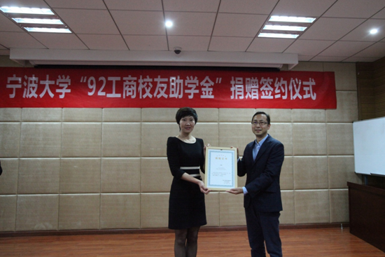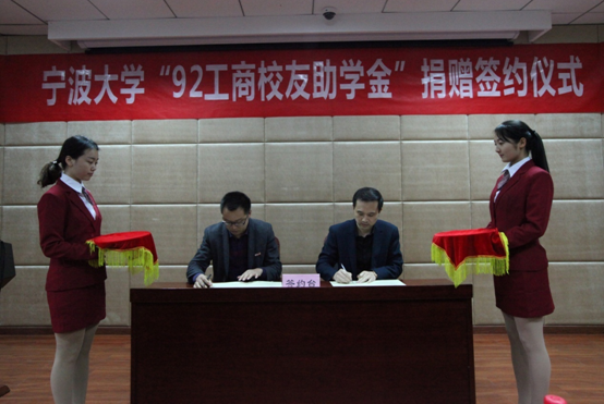 11月16日,宁波大学“92工商校友助学金”捐赠签约仪式在109室举行。出席本次捐赠签约仪式的有92级工商经济系本科班校友代表俞海宏、张春雷、周攀峰、马益波、李毓慧、郑文红,宁波大学校友发展联络处处长助理、校友办主任助理张海华,菠菜网站-十大菠菜网站