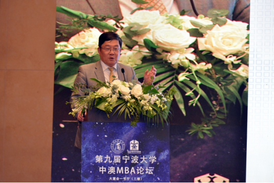 对大家表示热烈欢迎,也向为本场论坛贡献付出的校友表示感谢。他介绍了宁大中澳MBA项目的创始、发展与教育成果,并简要回顾了中澳MBA校友会的创立、发展与活动开展。他指出校友会是促进校企间合作开展科技研发、人才培养的一个优质平台,十分肯定校友会历来对中澳MBA项目的存续和发展所做的贡献,并进一步提出,希望校友会密切同海内外校友、与母校的联系,增进友谊、加强合作、促进交流,为学校建设与发展,为国家与地方经济、社会事业的繁荣进步做贡献。
