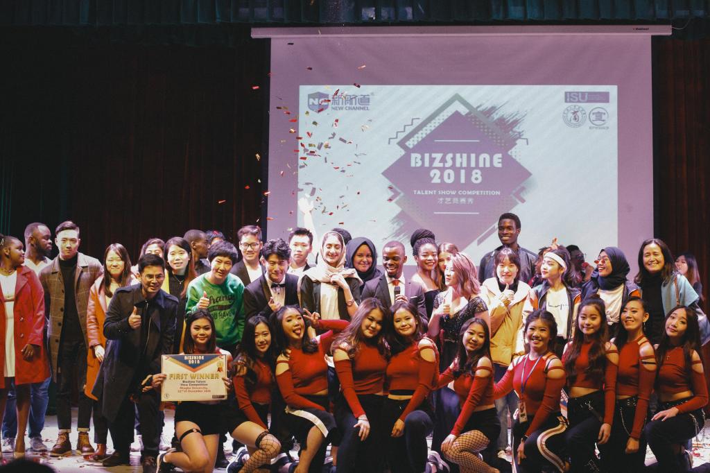 在锦绣小剧场成功举办中外学子BIZSHINE才艺秀。院党委副书记邵丽、留学生辅导员等出席了活动。