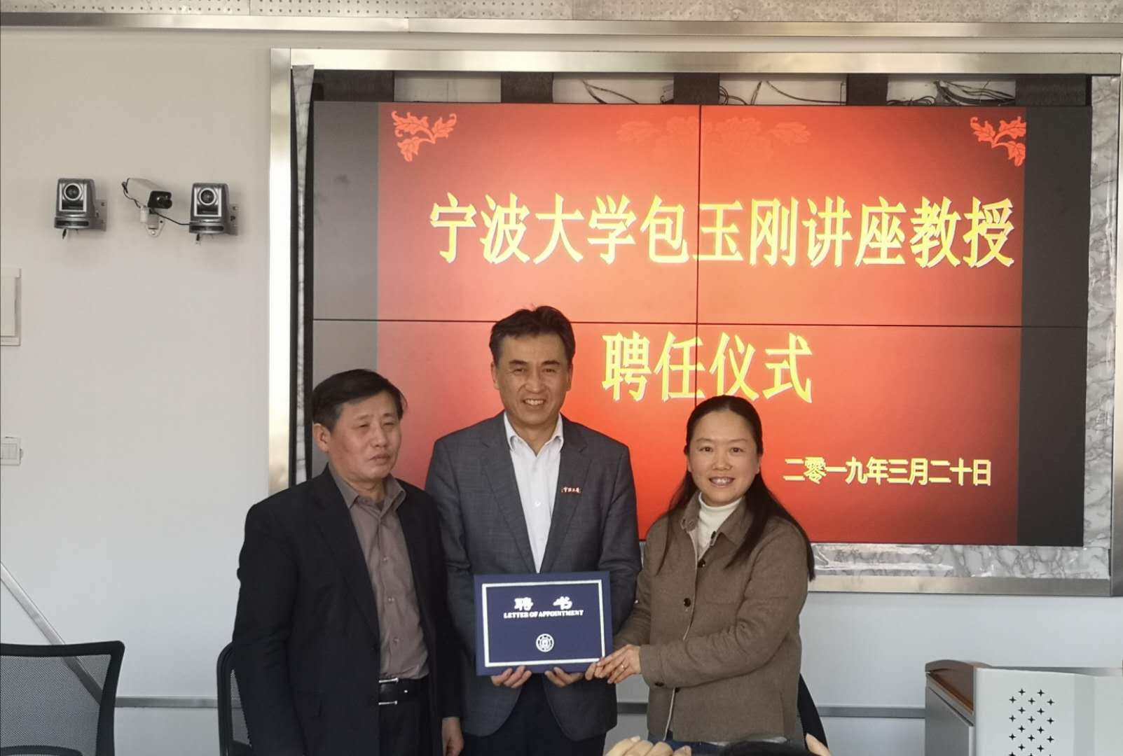 院长毛基业教授为我校包玉刚讲座教授,宁波大学党委委员、组织部部长胡敏出席并致辞,为毛基业教授颁发聘书并佩戴宁波大学校徽。聘任仪式由金祥荣院长主持,彭新敏等师生代表出席了聘任仪式。