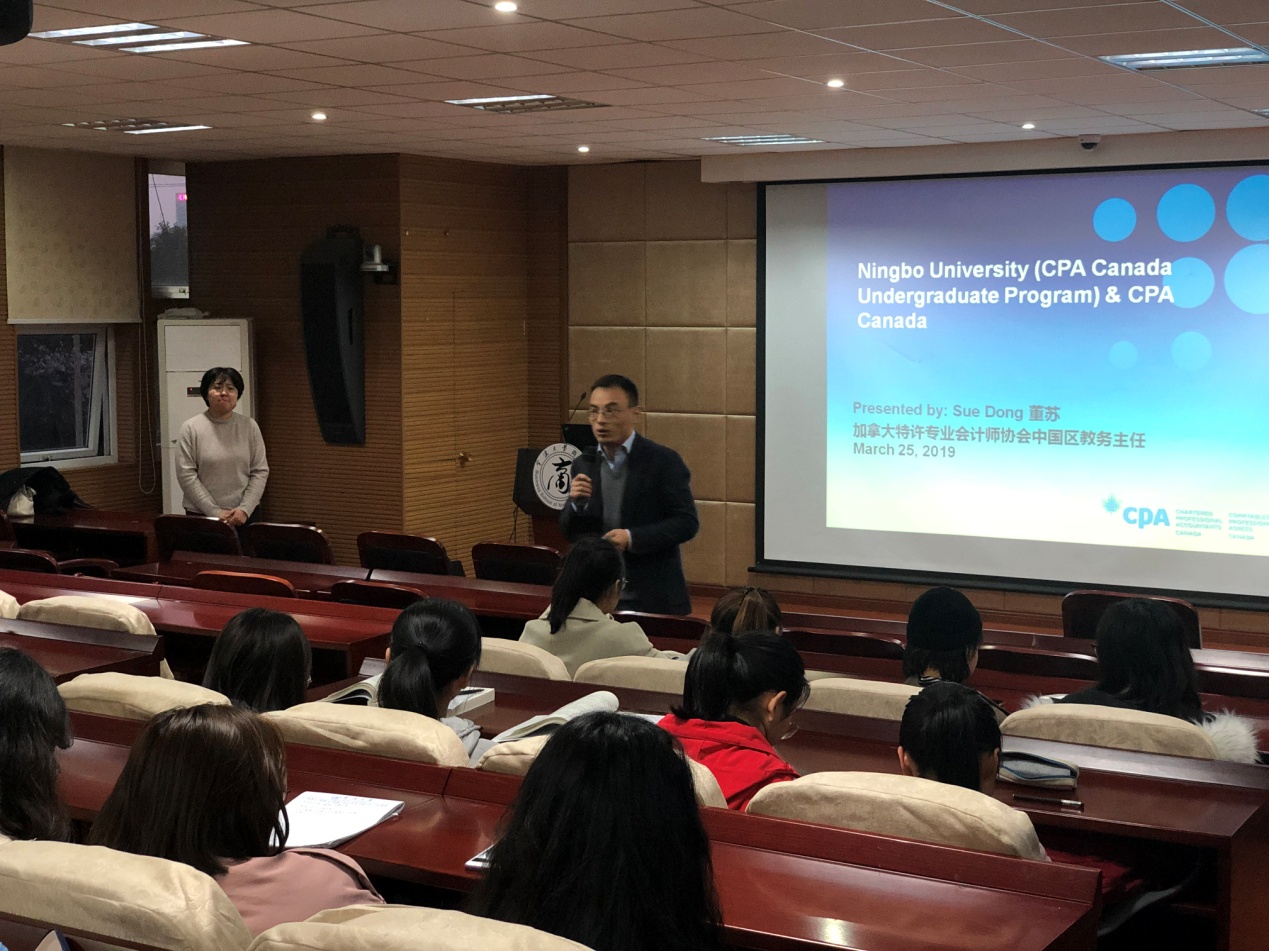 会上,董苏女士围绕会计行业的认识、加拿大特许专业会计师协会发展历史、未来职业发展规划这三个主题,为学生们详细介绍了时代变化对会计行业的影响和对未来财务人员能力的新要求,以及CPA Canada的职业范围、职业发展、考试大体框架、考试流程和考试形式等内容。
