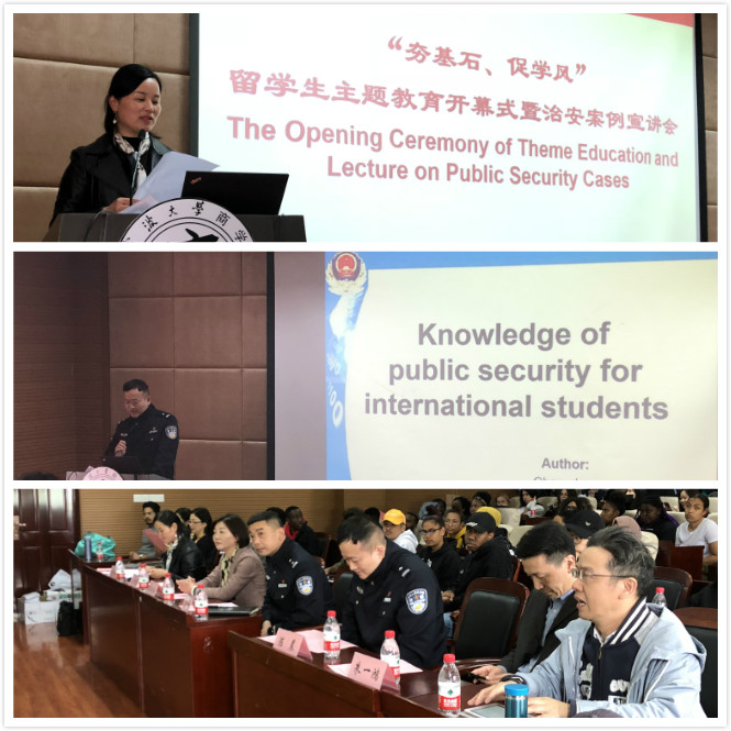开幕式后,来自宁波市文苑派出所的陈晨警官给留学生们作了主题教育活动第一讲,以案说法,以案示规,用大量生动丰富的治安案例来教育警示学生,让学生们受益匪浅,也吸引了很多学生现场交流和提问。