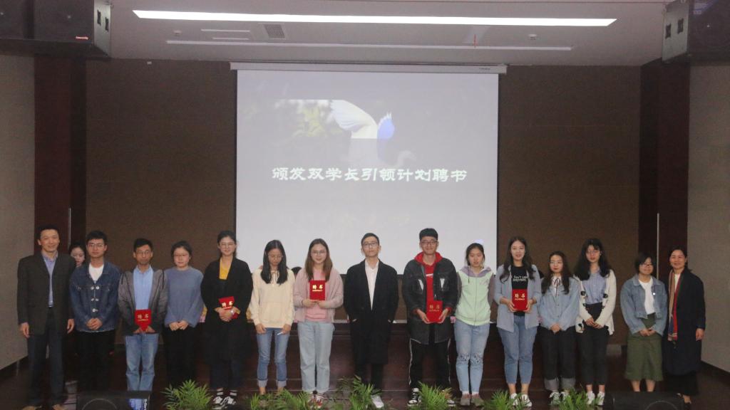 “双学长引领”计划启动仪式,为准备考研学生配备一名校内研究生学导和一名校外就读知名高校校友学导。其中校内研究生学导由研究生党员、预备党员和积极分子组成,以一位研究生带两位本科生的形式进行结对,本次活动共结对47组,菠菜网站