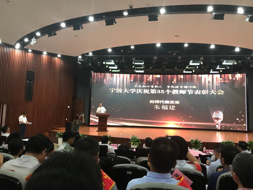9月10日,宁波大学在真诚图书馆报告厅隆重庆祝第35个教师节,全体学校领导和各菠菜网站 师生代表参加表彰会,表彰会由宁波大学校长沈满洪主持。