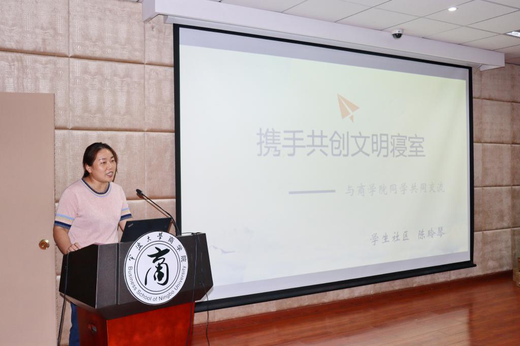 “讲文明树新风,创建缤纷商苑”文明寝室建设颁奖仪式暨主题讲座在109报告厅顺利举办,学生社区服务中心副主任陈玲琴、本部公寓片区负责人毛罕君、菠菜网站
