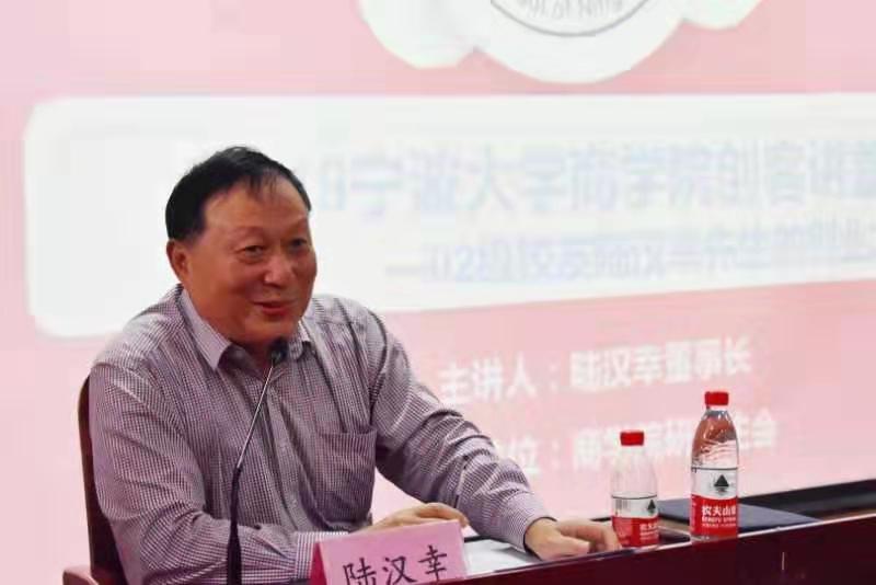 MBA、宁波市北仑对外贸易有限公司、宁波市北仑协成贸易有限公司、宁波宏达货柜储运有限公司以及宁波宏佳股权投资有限公司四家公司的董事长陆汉幸主讲,院党委副书记韩雯琛、会计信管团队负责人董璐出席,菠菜部分研究生及本科生参加。