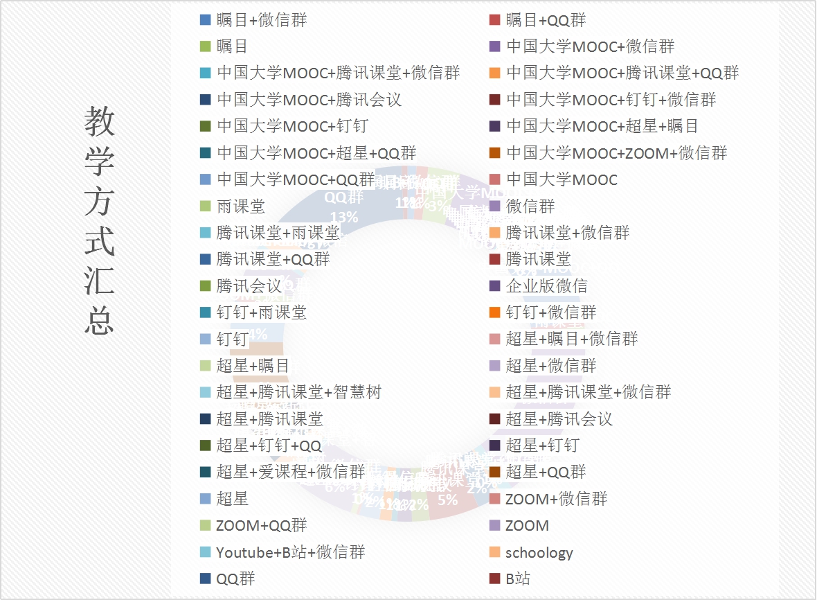 老师线上教学平台软件多样,搭配也丰富多彩,多达44种不同的混合方式。
