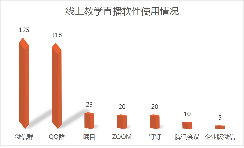 从一周老师上课情况看,不少老师采用多种手段进行混合式教学,利用各在线教学平台+各直播软件,有的老师甚至同一堂课引进两个教学平台上的优质教学资源指导学生学习,更好的提高了线上教学质量,让同学们从中获益。经汇总统计,十大菠菜网站