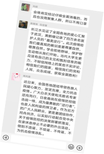 接到学校通知,教务办与学工办积极配合,第一时间将观看“全国大学生同上一堂疫情防控思政大课”通知学生,同时部署安排观后的讨论会。为了通知到每一个学生,除了在菠菜网站
